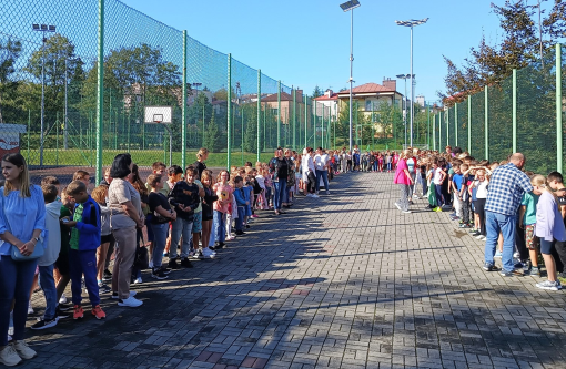 O godzinie 12.00 reprezentanci klas 0-V, brali udział w symbolicznej akcji-Balony w górę. Wspólnie z dyrekcją Panią Zofią Międlar- Mruk wypuścili w górę nadmuchane, niebieskie balony.