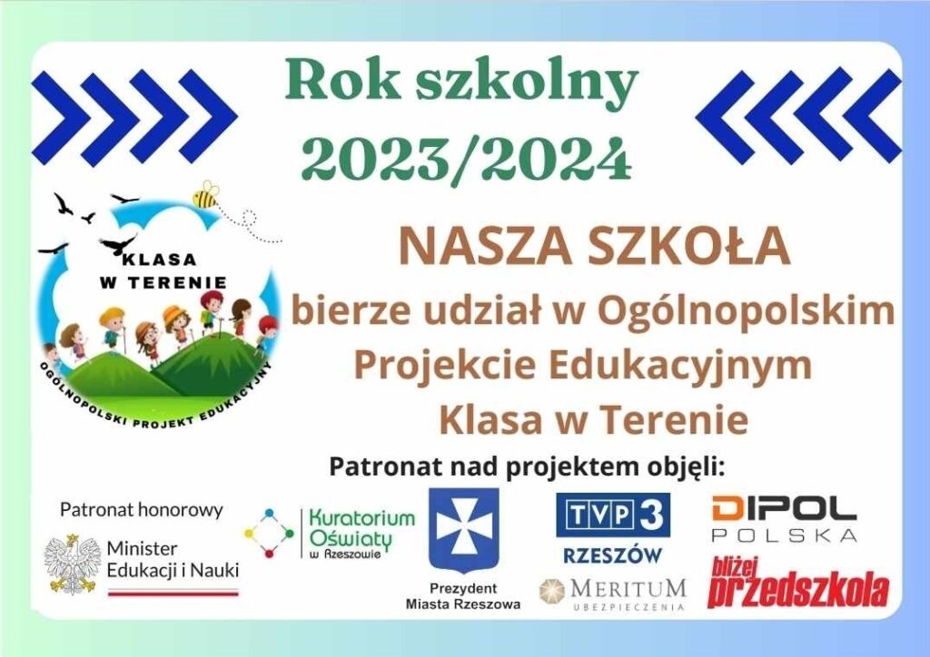 Bardzo miło nam poinformować, że od września w naszej szkole realizowany jest Ogólnopolski Projekt Edukacyjny ,,Klasa w Terenie”. Jego głównym celem jest promowanie wartości edukacji na świeżym powietrzu, która jest jedną z najbardziej radosnych i efektywnych form edukacji. W czasie wyjść, wycieczek i wyjazdów uczniowie nie tylko doskonale się bawią, ale także przyswajają wiedzę, angażując różne zmysły.