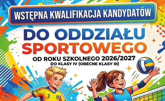 Widząc nowe możliwości i ogromny, niewykorzystany potencjał naszych uczniów, odpowiadając na potrzeby środowiskowe oraz chcąc poszerzyć ofertę edukacyjną naszej szkoły… ogłaszamy wstępną kwalifikację kandydatów do oddziału sportowego. Zaczynamy już od roku szkolnego 2026/27 klasą IV w dyscyplinie piłka siatkowa i piłka nożna. Do udziału w tym projekcie zapraszamy wszystkich […]