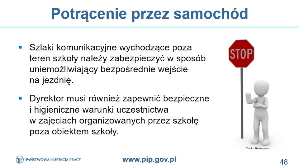 Nasza szkoła podjęła współpracę z Państwową Inspekcją Pracy w ramach programu profilaktycznego „Bezpiecznie w szkołach”. Celem uruchomionego programu jest popularyzacja wymagań prawnych oraz dobrych praktyk w zakresie działań polegających na zapobieganiu i redukcji zagrożeń w szkołach, ze szczególnym uwzględnieniem ochrony zdrowia w czasie pandemii.W naszej szkole inspektor PIP przeprowadził takie szkolenie, w którym upowszechniane były zagadnienia bezpieczeństwa i higieny pracy, w tym związane z dokonaniem prawidłowej oceny ryzyka zawodowego. Wsparciem tych działań jest również doradztwo PIP w zakresie bezpiecznych warunków pracy, uzupełnione dystrybucją tematycznych plakatów, prezentujących dobre praktyki i rozwiązania antykowidowe. Realizacja programu uwzględnia również wymianę informacji ze służbami sanitarnymi w zakresie nieprawidłowości dotyczących zagadnień leżących w kompetencjach Państwowej Inspekcji Sanitarnej.
