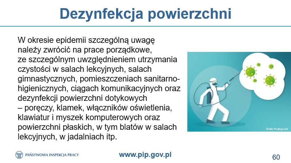 Nasza szkoła podjęła współpracę z Państwową Inspekcją Pracy w ramach programu profilaktycznego „Bezpiecznie w szkołach”. Celem uruchomionego programu jest popularyzacja wymagań prawnych oraz dobrych praktyk w zakresie działań polegających na zapobieganiu i redukcji zagrożeń w szkołach, ze szczególnym uwzględnieniem ochrony zdrowia w czasie pandemii.W naszej szkole inspektor PIP przeprowadził takie szkolenie, w którym upowszechniane były zagadnienia bezpieczeństwa i higieny pracy, w tym związane z dokonaniem prawidłowej oceny ryzyka zawodowego. Wsparciem tych działań jest również doradztwo PIP w zakresie bezpiecznych warunków pracy, uzupełnione dystrybucją tematycznych plakatów, prezentujących dobre praktyki i rozwiązania antykowidowe. Realizacja programu uwzględnia również wymianę informacji ze służbami sanitarnymi w zakresie nieprawidłowości dotyczących zagadnień leżących w kompetencjach Państwowej Inspekcji Sanitarnej.