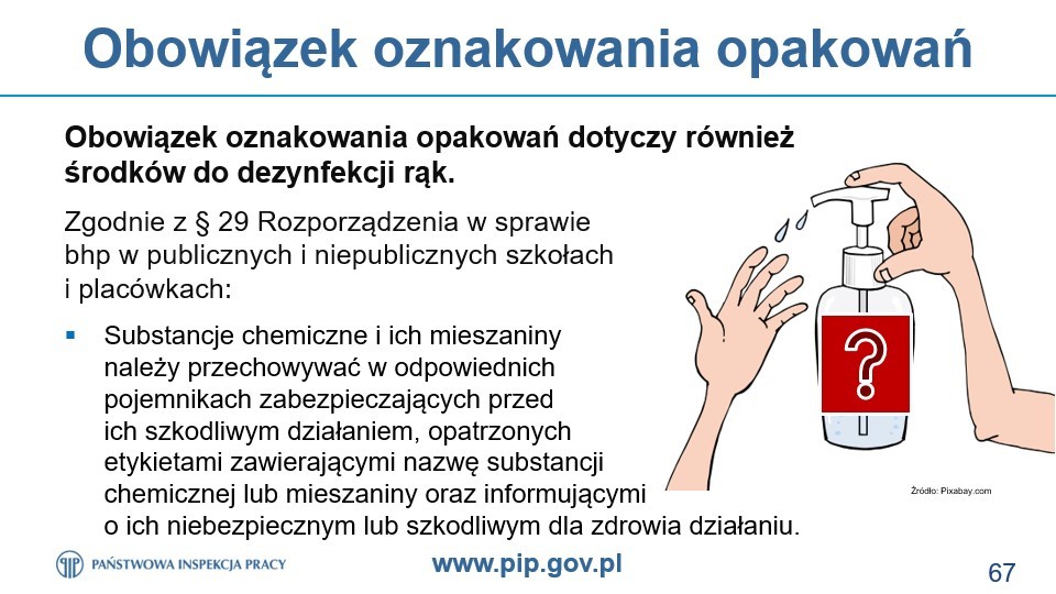 Nasza szkoła podjęła współpracę z Państwową Inspekcją Pracy w ramach programu profilaktycznego „Bezpiecznie w szkołach”. Celem uruchomionego programu jest popularyzacja wymagań prawnych oraz dobrych praktyk w zakresie działań polegających na zapobieganiu i redukcji zagrożeń w szkołach, ze szczególnym uwzględnieniem ochrony zdrowia w czasie pandemii.W naszej szkole inspektor PIP przeprowadził takie szkolenie, w którym upowszechniane były zagadnienia bezpieczeństwa i higieny pracy, w tym związane z dokonaniem prawidłowej oceny ryzyka zawodowego. Wsparciem tych działań jest również doradztwo PIP w zakresie bezpiecznych warunków pracy, uzupełnione dystrybucją tematycznych plakatów, prezentujących dobre praktyki i rozwiązania antykowidowe. Realizacja programu uwzględnia również wymianę informacji ze służbami sanitarnymi w zakresie nieprawidłowości dotyczących zagadnień leżących w kompetencjach Państwowej Inspekcji Sanitarnej.