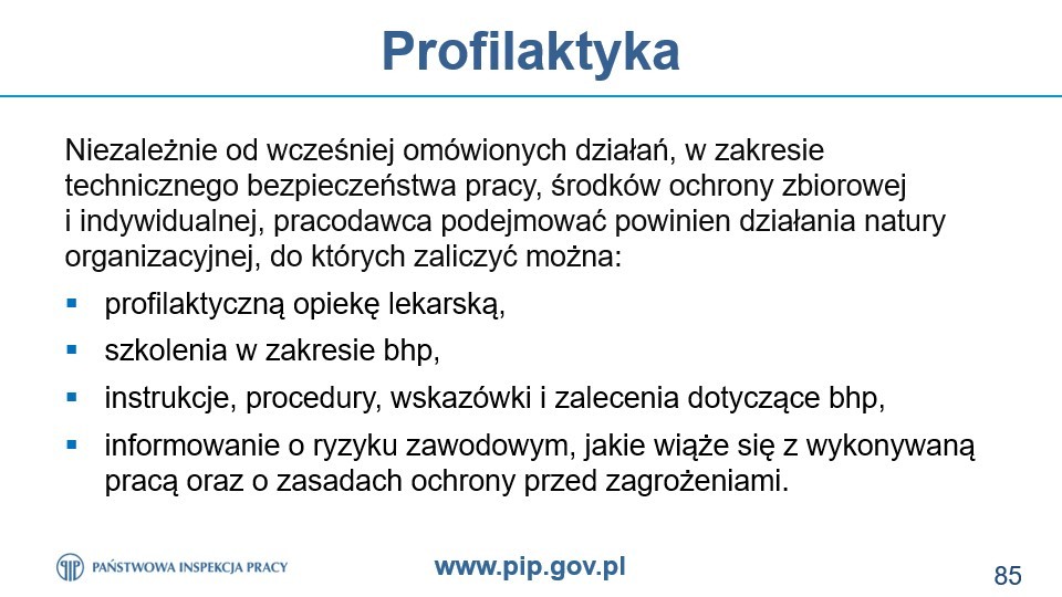 Nasza szkoła podjęła współpracę z Państwową Inspekcją Pracy w ramach programu profilaktycznego „Bezpiecznie w szkołach”. Celem uruchomionego programu jest popularyzacja wymagań prawnych oraz dobrych praktyk w zakresie działań polegających na zapobieganiu i redukcji zagrożeń w szkołach, ze szczególnym uwzględnieniem ochrony zdrowia w czasie pandemii.W naszej szkole inspektor PIP przeprowadził takie szkolenie, w którym upowszechniane były zagadnienia bezpieczeństwa i higieny pracy, w tym związane z dokonaniem prawidłowej oceny ryzyka zawodowego. Wsparciem tych działań jest również doradztwo PIP w zakresie bezpiecznych warunków pracy, uzupełnione dystrybucją tematycznych plakatów, prezentujących dobre praktyki i rozwiązania antykowidowe. Realizacja programu uwzględnia również wymianę informacji ze służbami sanitarnymi w zakresie nieprawidłowości dotyczących zagadnień leżących w kompetencjach Państwowej Inspekcji Sanitarnej.