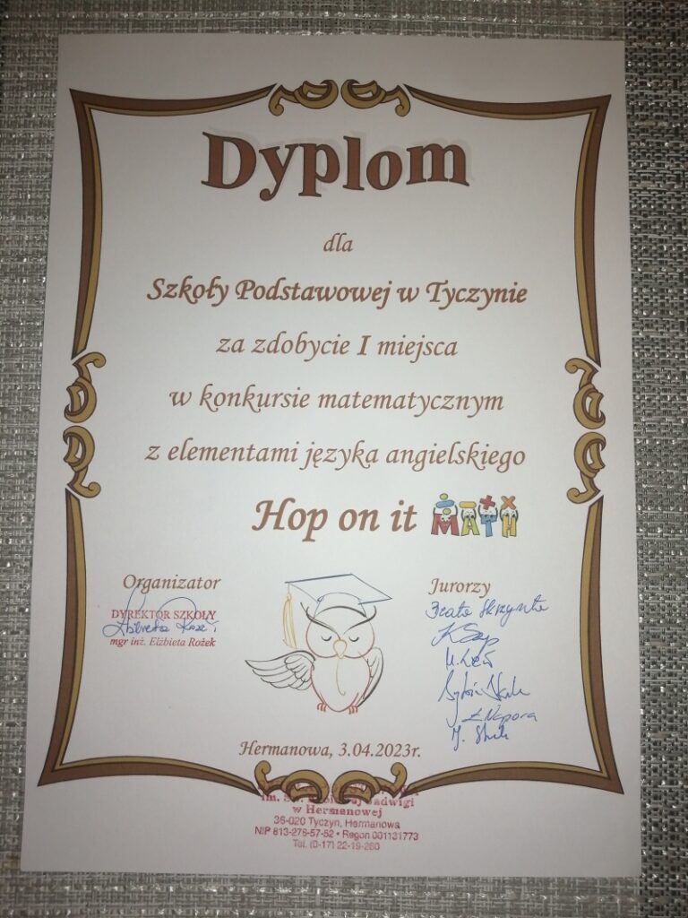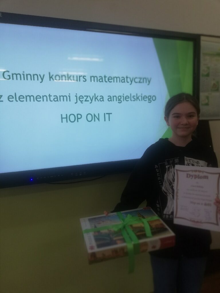 Sukces w konkursie matematycznym z elementami języka angielskiego „Hop on it”