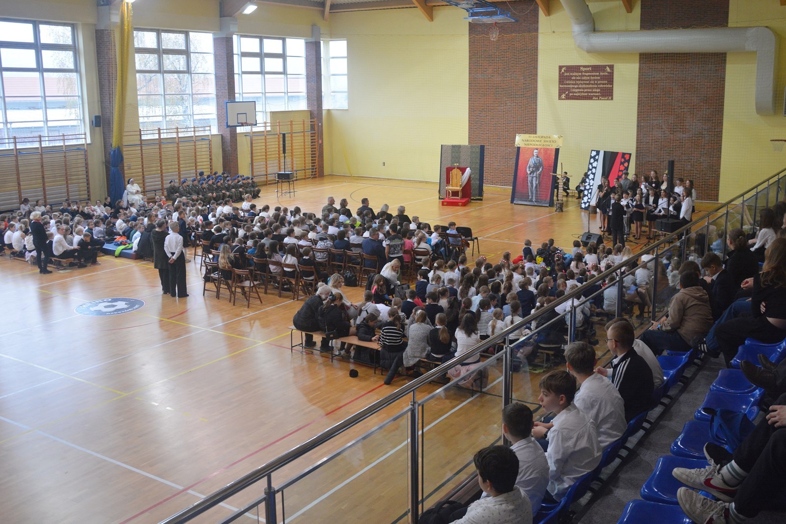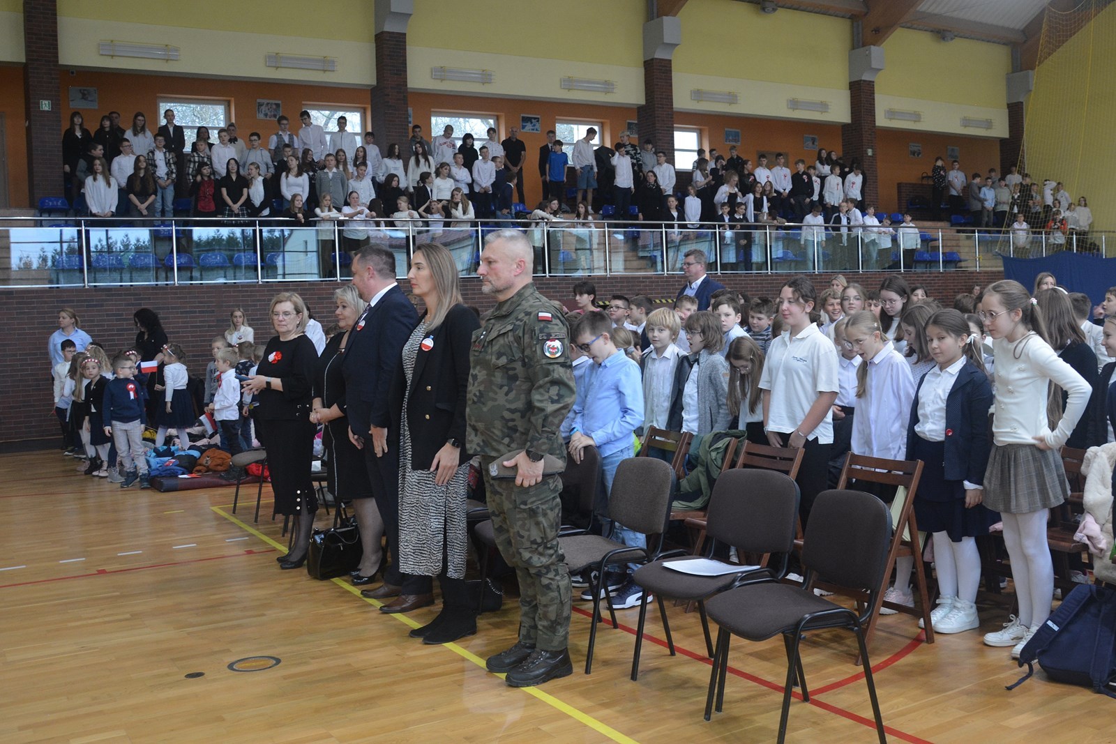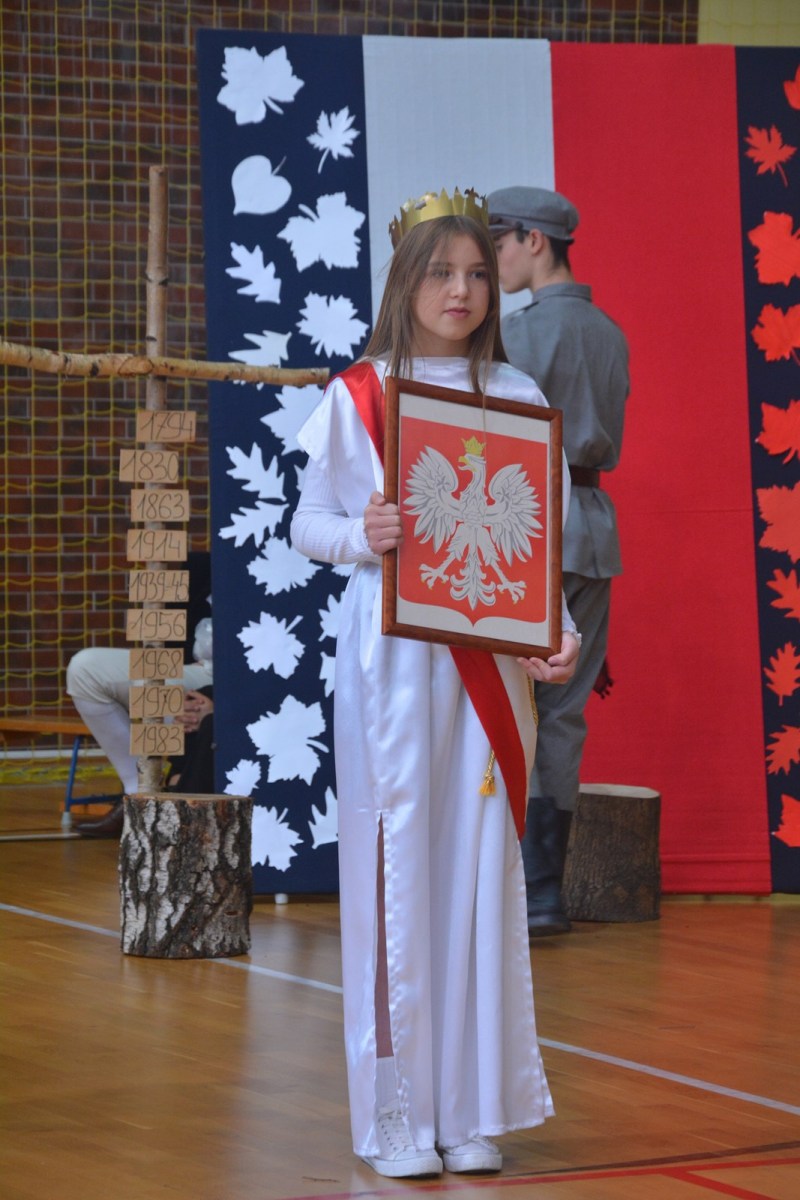 8 listopada w naszej szkole miały miejsce obchody Narodowego Święta Niepodległości. W uroczystości wzięli udział m.in. dyrektor szkoły Zofia Międlar-Mruk, wicedyrektorzy Zofia Kwater i Adam Janiec, nauczyciele, cała społeczność uczniowska oraz zaproszeni goście. W tym dniu swoją obecnością zaszczycili nas m.in.: sekretarz Gminy Anna Fil oraz dowódca drużyny ZS Orląt Jacek Surówka. Po wzruszającej akademii w ramach akcji „Szkoła do hymnu” o symbolicznej godzinie 11:11 wspólnie odśpiewaliśmy „Mazurka Dąbrowskiego”.Na zakończenie wszyscy z zaciekawieniem oglądaliśmy musztrę i pokaz sprzętu wojskowego przygotowane przez drużynę naszych Orląt.