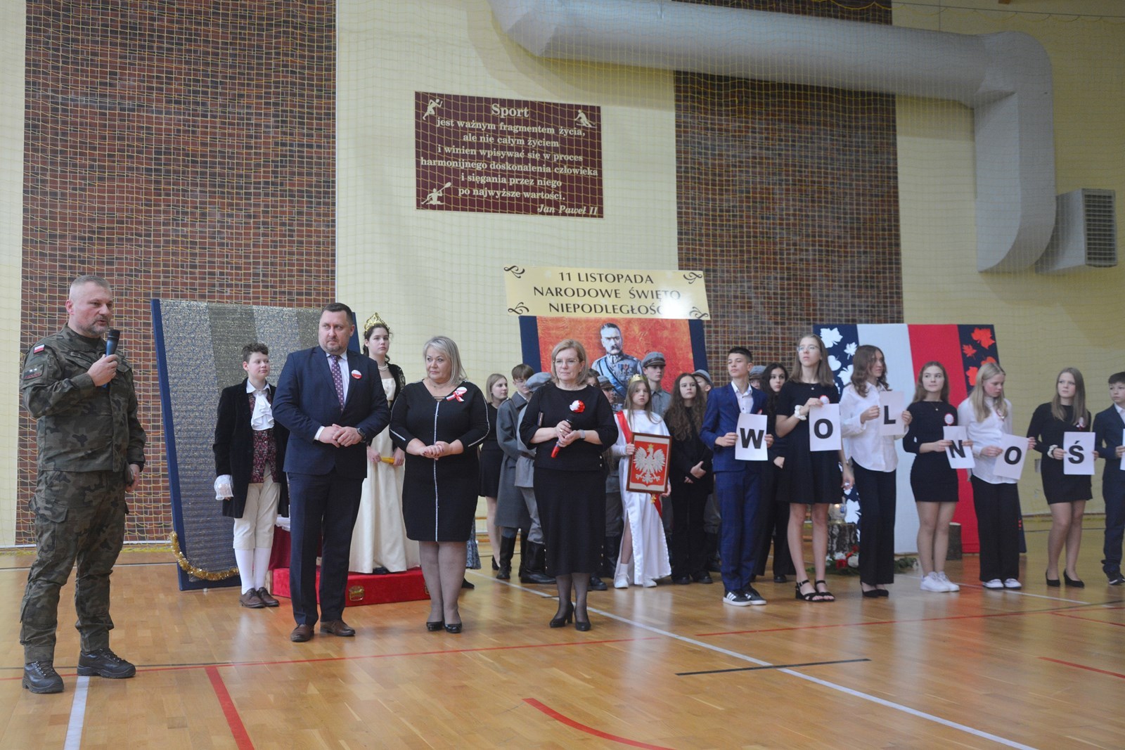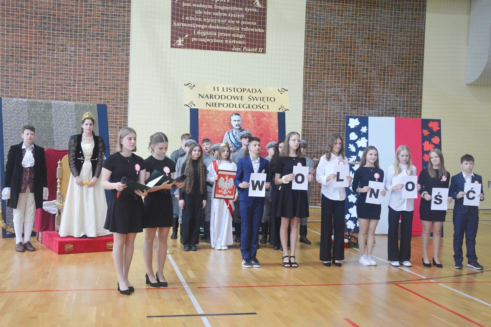 W tym dniu patriotyczny charakter obchodów podkreślały nie tylko sztandar szkoły, uroczyste odśpiewanie hymnu państwowego, wiersze i pieśni patriotyczne, ale również galowe stroje wszystkich uczestników akademii oraz kotyliony w barwach narodowych, gdyż właśnie dzięki dbałości o takie elementy kształtuje się w młodych pokoleniach przywiązanie do ojczyzny, ziemi rodzinnej, obyczajów oraz kultury narodowej. Uczy się szacunku dla ludzi, którzy ją tworzyli.