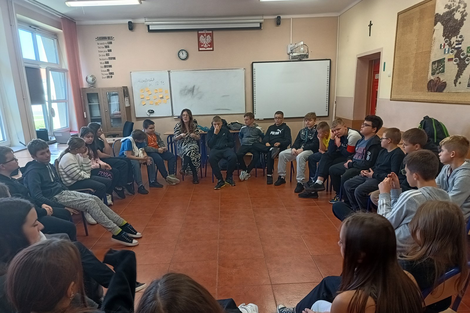 Uczestniczyliśmy również w szkoleniu i warsztatach dotyczącym cyberprzemocy wśród dzieci i młodzieży – „Szkoda życia na hejt”, prowadzone przez trenera z Fundacji UNIQA.