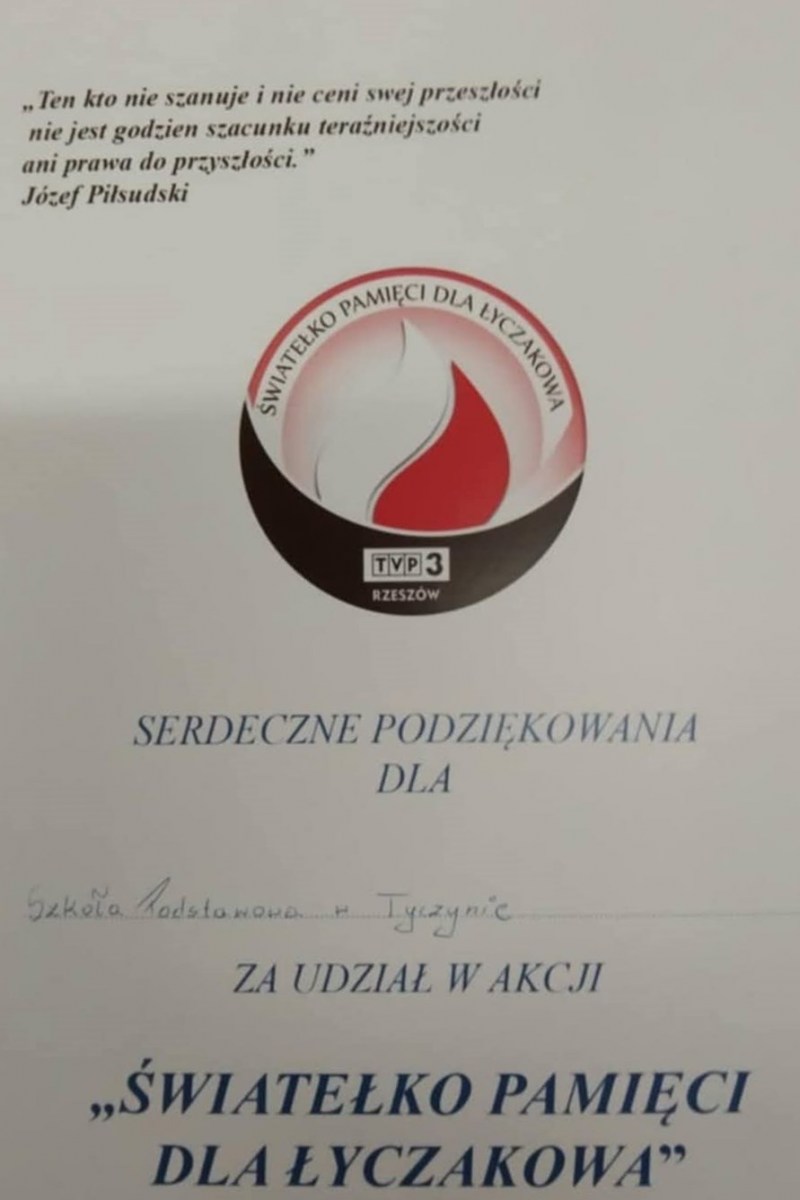 Chcąc uwrażliwiać młodzież i kształtować właściwe wzorce nasza szkoła od wielu już lat aktywnie włącza się w różne akcje. W tym roku szkolnym są to m.in.: Herbatka dla seniora-współpraca z Domem Seniora „Pogodna Dolina” w Siedliskach, „Światełko Pamięci dla Łyczakowa” – zbiórka biało-czerwonych zniczy i przekazanie ich do TV Rzeszów, „Pamiętamy…” – porządkowanie grobów i zapalenie zniczy na mogiłach bohaterów tyczyńskiej ziemi, kwesta na cmentarzu parafialnym w Tyczynie rzecz Rzeszowskiego Towarzystwa Pomocy im. św. Brata Alberta, Ogólnopolska Zbiórka Żywności ,,Tak, pomagam” w sklepie Marmax w Tyczynie, zbiórka karmy dla Schroniska zwierząt „Kundelek”, zasadzenie żonkili w ramach akcji „Pola Nadziei”, organizowanej na rzecz Podopiecznych Fundacji Podkarpackie Hospicjum dla Dzieci oraz „Zostań Mikołajem dziecięcych serc”- zbiórka dla Podopiecznych Hospicjum dla Dzieci.