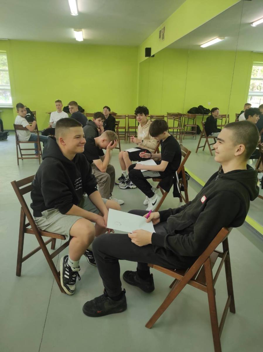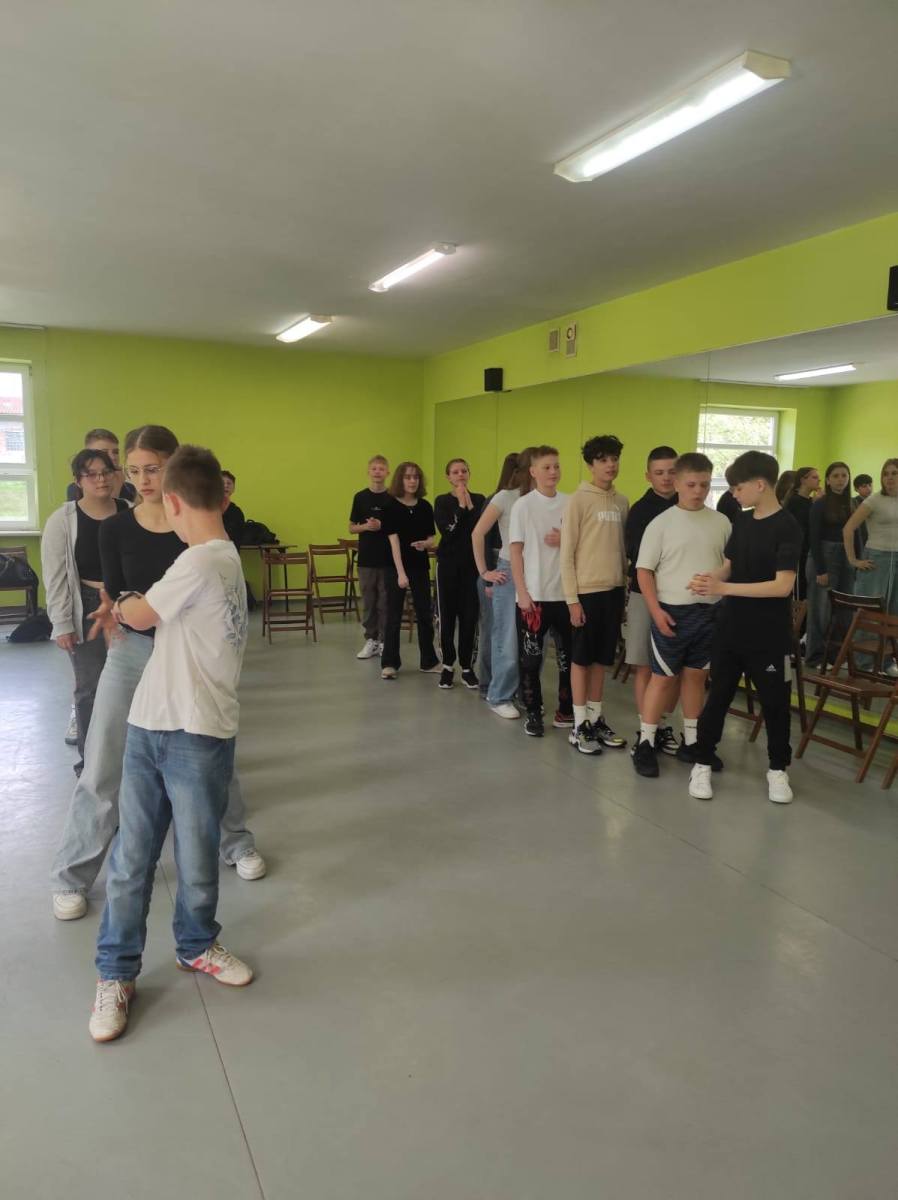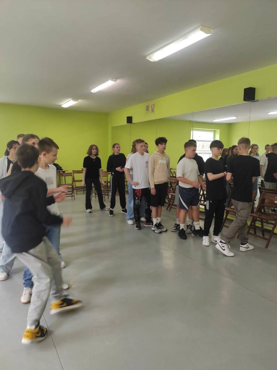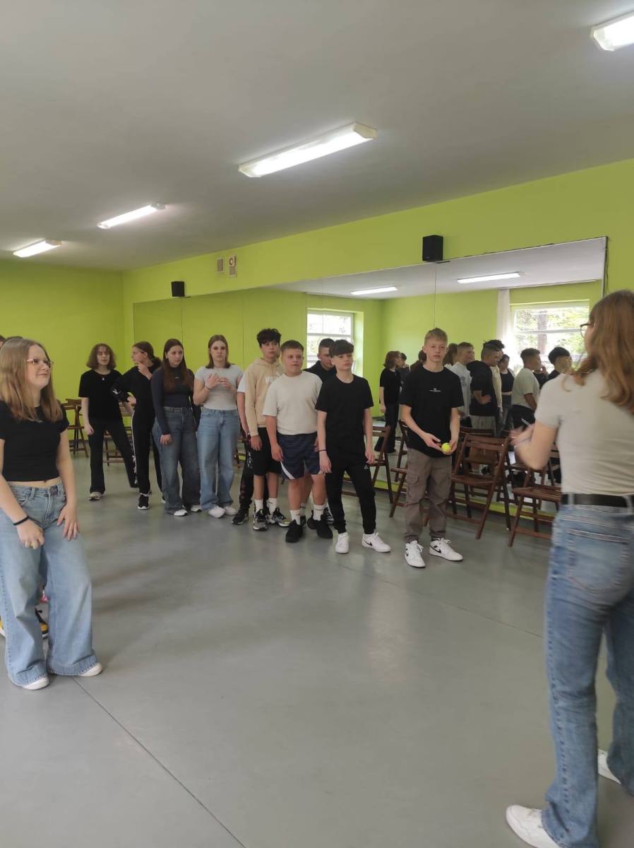 Zajęcia w formie zabawowej poprowadziły panie: Jagoda Warzocha i Agata Domańska. W zajęciach tych wzięli udział uczniowie klas: 7a, 7b, 7c. Było trochę języka niemieckiego, trochę ruchu, rywalizacji no i cała masa dobrej zabawy.