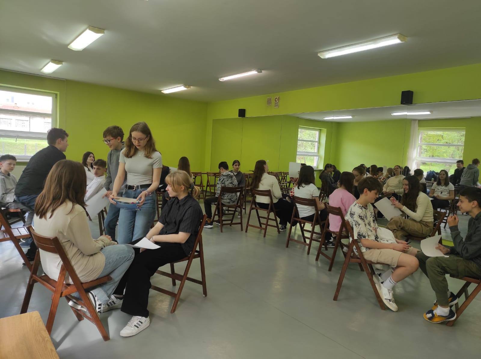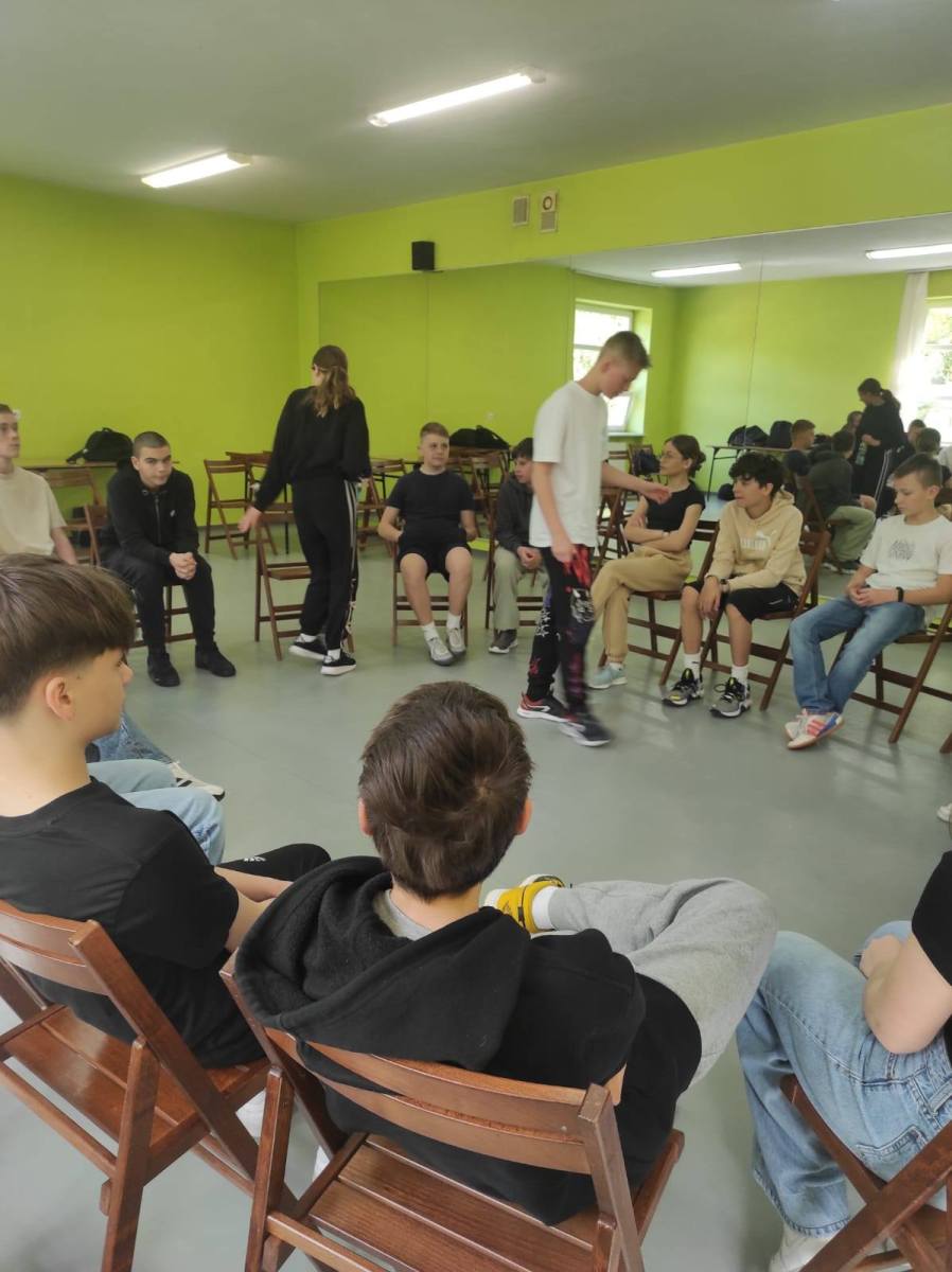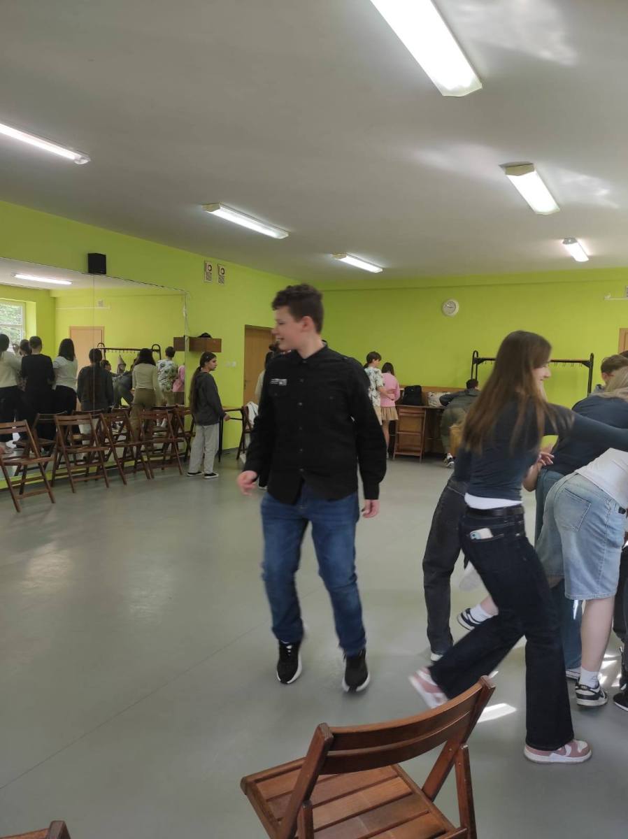 Zajęcia w formie zabawowej poprowadziły panie: Jagoda Warzocha i Agata Domańska. W zajęciach tych wzięli udział uczniowie klas: 7a, 7b, 7c. Było trochę języka niemieckiego, trochę ruchu, rywalizacji no i cała masa dobrej zabawy.
