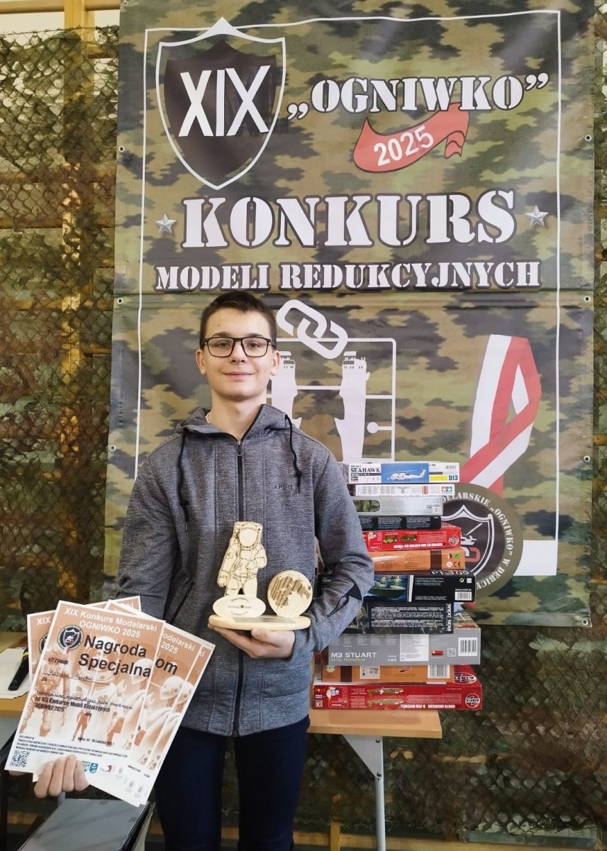 W tegorocznej edycji konkursu XIX KMR „Ogniwko 2025” uczestniczył także nasz uczeń Mateusz Wróbel z klasy VIIIb, który w klasyfikacji wiekowej juniorów zdominował rywalizację. Prace Mateusza zdobyły: