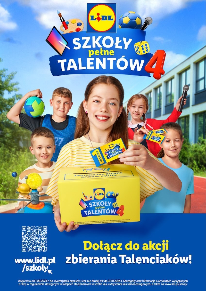 Miło nam poinformować, że już po raz czwarty nasza szkoła przystąpiła do akcji Szkoły Pełne Talentów organizowanej przez sieć sklepów Lidl. Jej celem jest wsparcie placówek oświatowych pomocami dydaktycznymi. Szkoły mogą odbierać ten sprzęt za zebrane Talenciaki – kupony, które otrzymują klienci Lidla, robiąc zakupy.