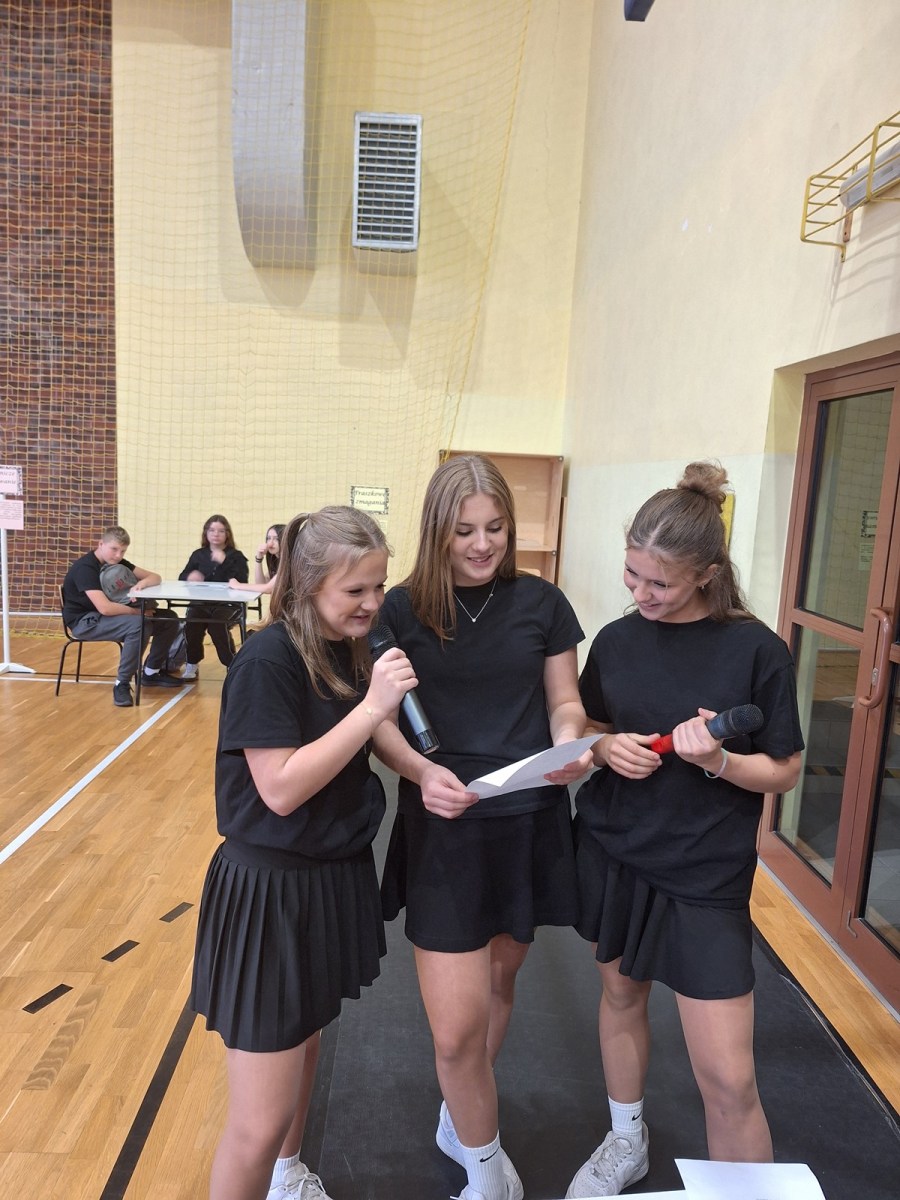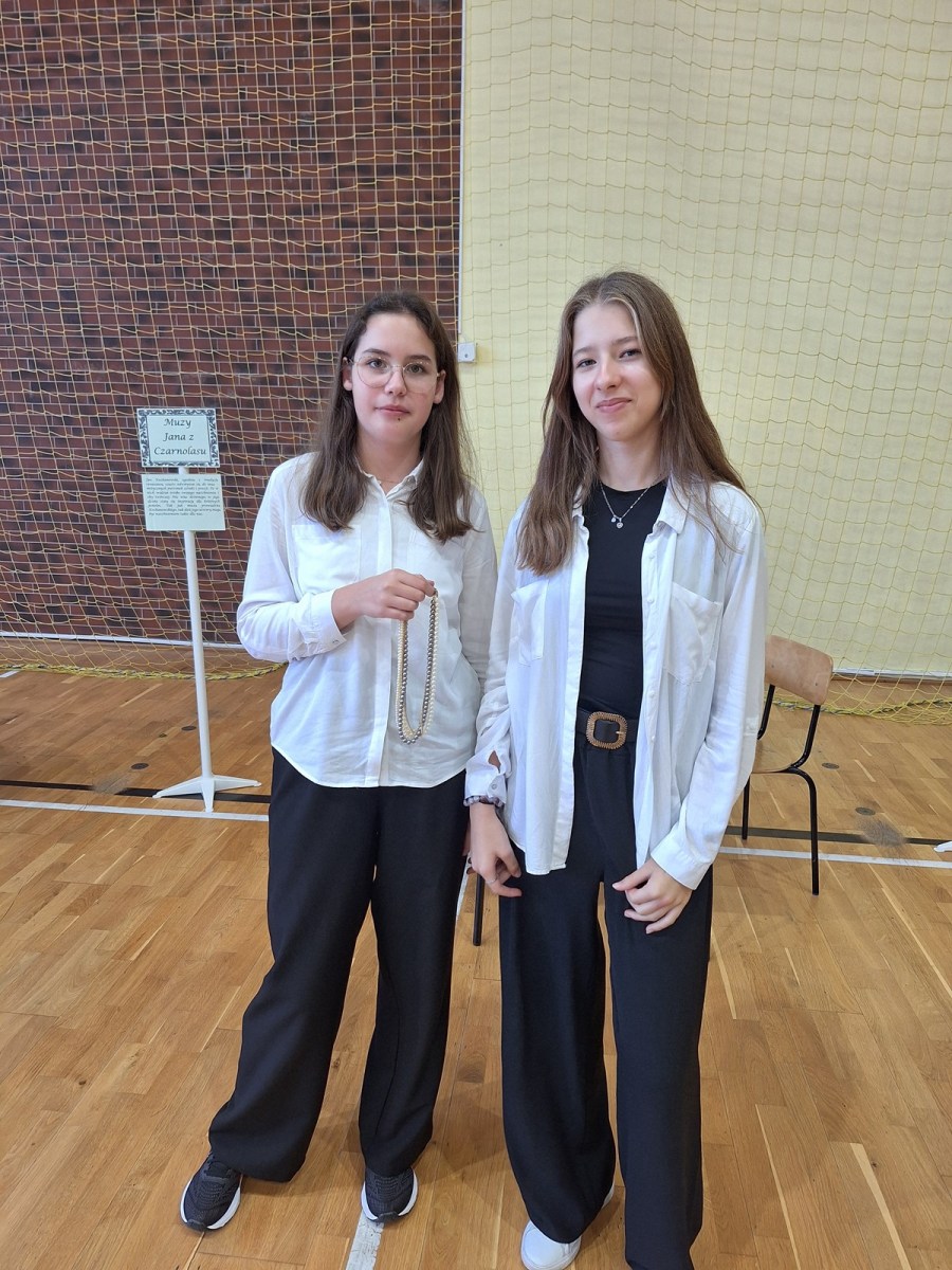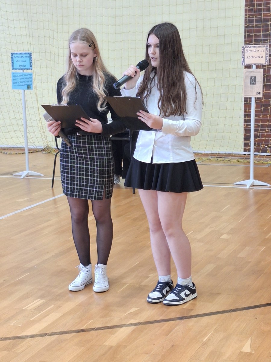 Imprezę poprowadziły: Karolina Makara i Zuzia Nowak z 8b.
