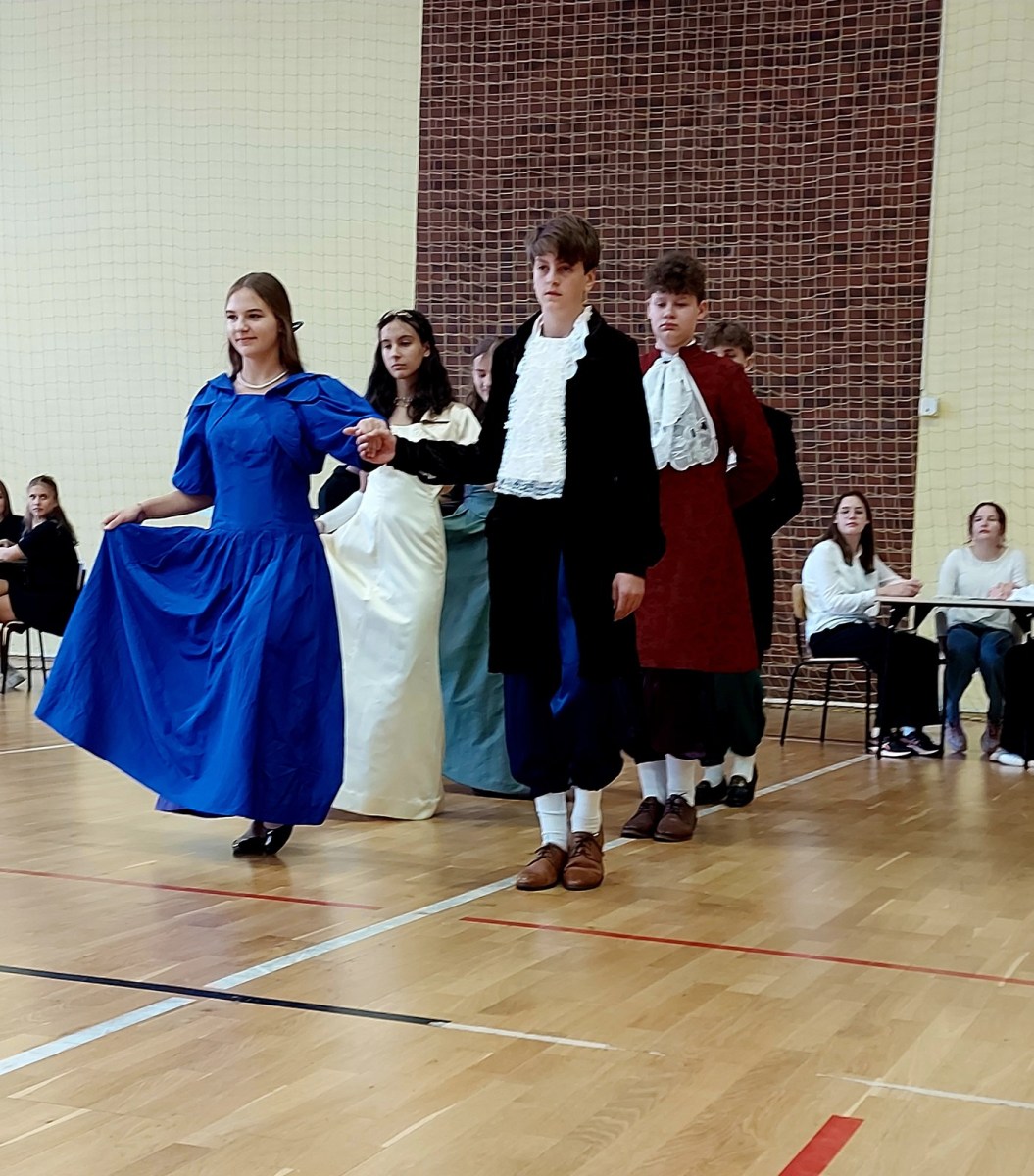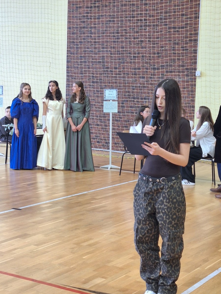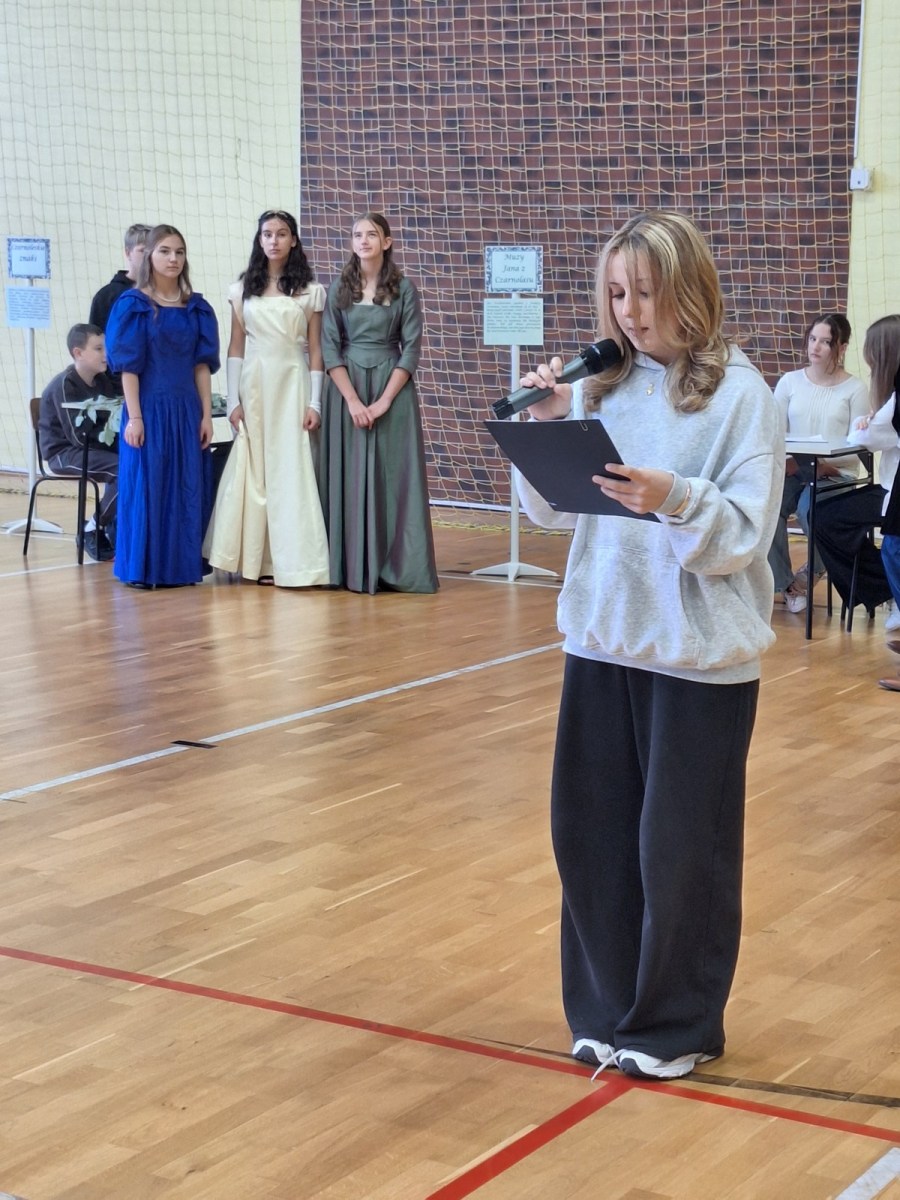 Oprócz czytania utworów poety w wykonaniu Pana Dyr. Adama Jańca i przedstawicieli młodzieży szkolnej, zorganizowany został również konkurs wiedzy dla uczniów klas siódmych i ósmych. Imprezę uświetnił pokaz renesansowego tańca (pawany)w wykonaniu uczniów klasy 8b oraz zupełnie nietypowy występ naszych szkolnych raperów – Mikołaja Drapały i Patryka Ziai w towarzystwie Floriana Sroki, Mariki Stec i Mileny Wójcik, którzy zaśpiewali szesnastowieczny tekst pt. „ Nie wierz Fortunie” .