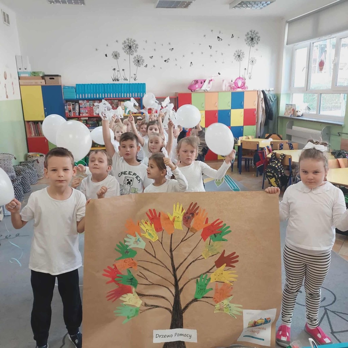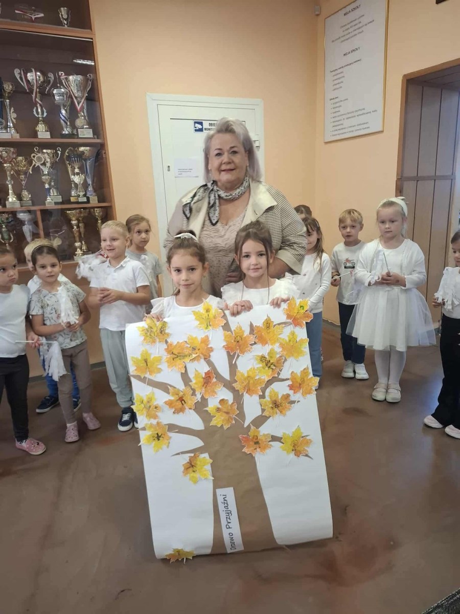 W oddziałach przedszkolnych: wykonano plakat „Drzewo przyjaźni” i „Drzewo pomocy”; odbyły się wybory „Super kolegi”; pedagodzy szkolni przeprowadzili warsztaty „Każdy jest ważny” i „Gdzie mieszkają emocje”; odbyły się pogadanki, filmy edukacyjne, zajęcia tematyczne prowadzone przez wychowawców oddziału 0; w dniu 2.10.2025 r. w ramach obchodów Międzynarodowego Dnia bez Przemocy uczniowie w białych strojach przemaszerowali korytarzami szkoły pod hasłem „Wszyscy się lubimy, zgodnie się bawimy” i zaśpiewali piosenki.