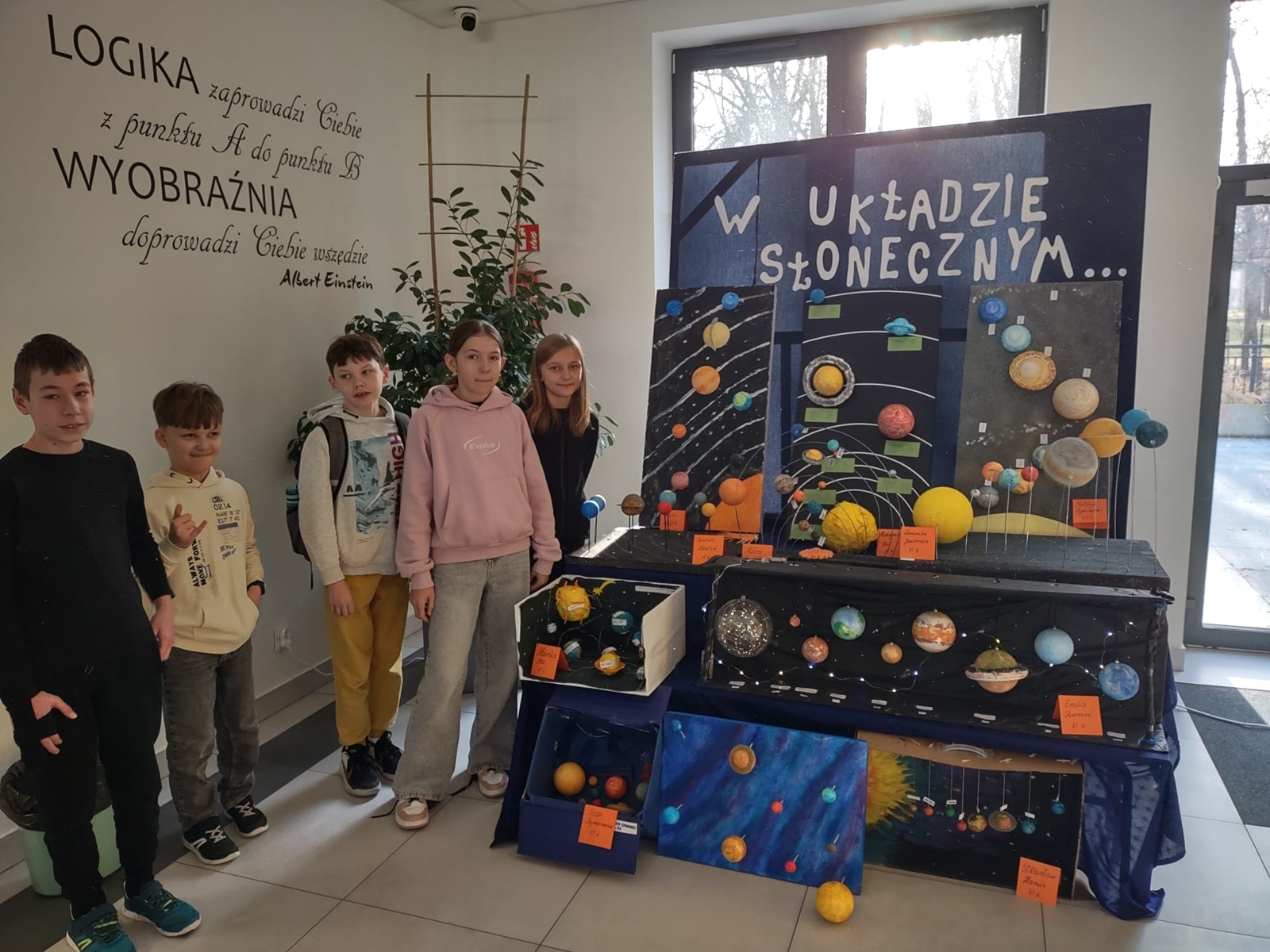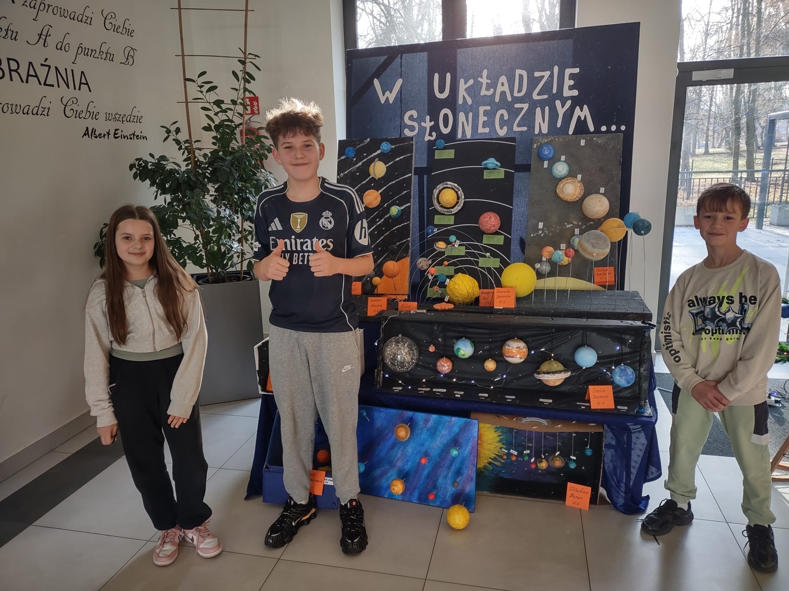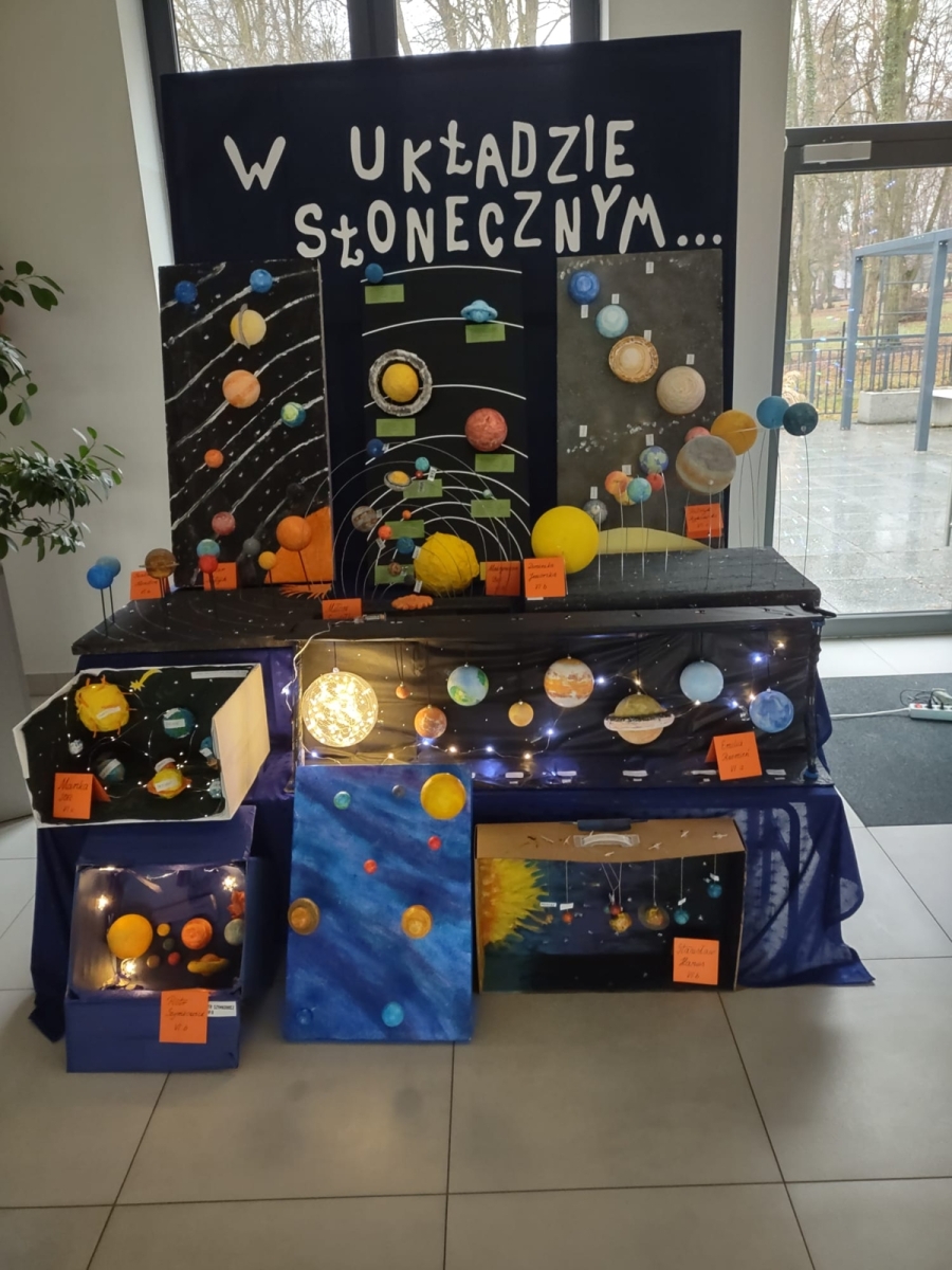 W ramach lekcji geografii w klasie szóstej, w czasie poznawania ruchów Ziemi i budowy Układu Słonecznego, wszyscy chętni uczniowie mieli możliwość jeszcze lepiej poznać powyższe zagadnienia i na podstawie zdobytej wiedzy i dostępnych źródeł wykonać model, makietę wspomnianego Układu Słonecznego. Efekty ich pracy można obejrzeć w budynku Szkoły, przy ul. Grunwaldzkiej na okazjonalnej wystawie.